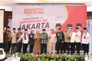 Jakarta,FloNews.id–|Gubernur DKI Jakarta, Pramono Anung, bersama Ketua DPRD DKI Jakarta, Khoirudin, menghadiri kegiatan Sarasehan ke-III Kaukus Muda Betawi bertema “Menyongsong 498 Tahun Kota Jakarta dan Lembaga Adat Masyarakat Betawi Tahun 2025”. Kegiatan ini berlangsung di Hotel Mercure, Ancol, Jakarta Utara, pada Senin (2/6).